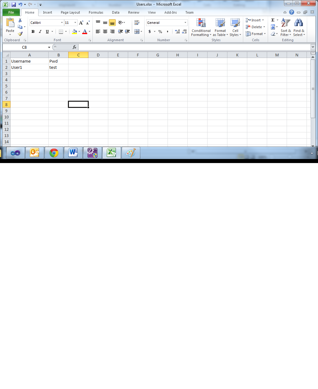 I created an excel file and added it in to my project (please see file 'Users' attached below).