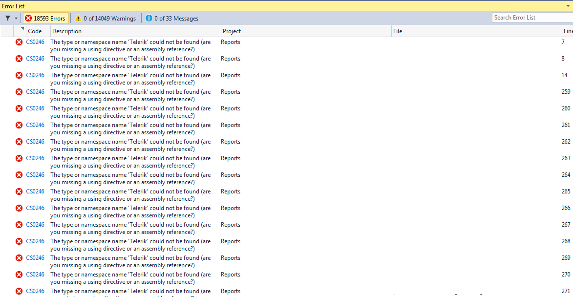 namespace name 'Telerik' could not be found (are you missing a using directive