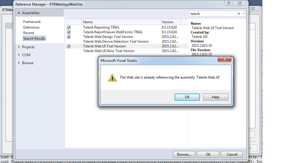 window, I got the error that "the website is already referencing the assembly