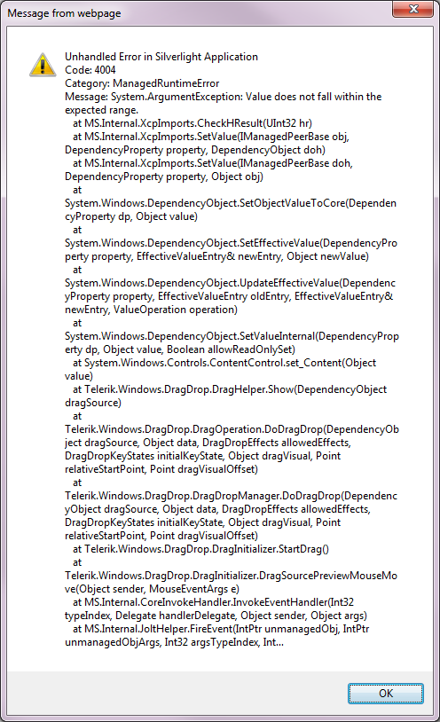 Please, check the answer in the corresponding thread - http://www.telerik.com/community/forums/silverlight/drag-and-drop/2011-q2-release---error-value-does-not-fall-within-the-expected-range.aspx