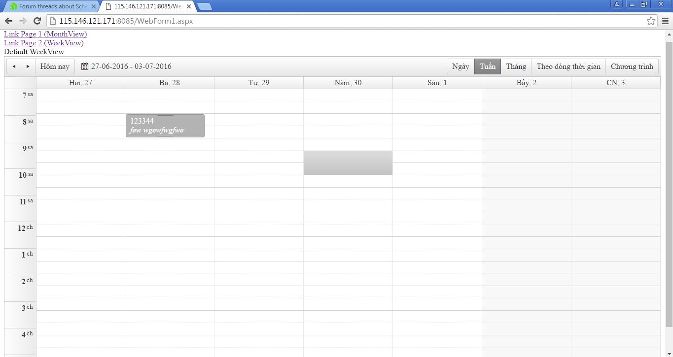 2. Page2 set SelectedView="WeekView", click next week onview, data show in date (28-Jun), but not show in date (27-Jun + 30-Jun). See image: WeekView_Default.JPG (in attachment)