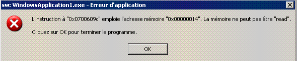 Public Class frmSimpleWinApp Private Sub frmEditeurAideLigne_Load(ByVal sender As System.Object, ByVal e As System.EventArgs) Handles MyBase.Load webbrowser1.Navigate("http://localhost:49646/Default.aspx") Me.WindowState = FormWindowState.Maximized End SubEnd ClassI have attached the error message I get (It's in french). Any idea on this error??