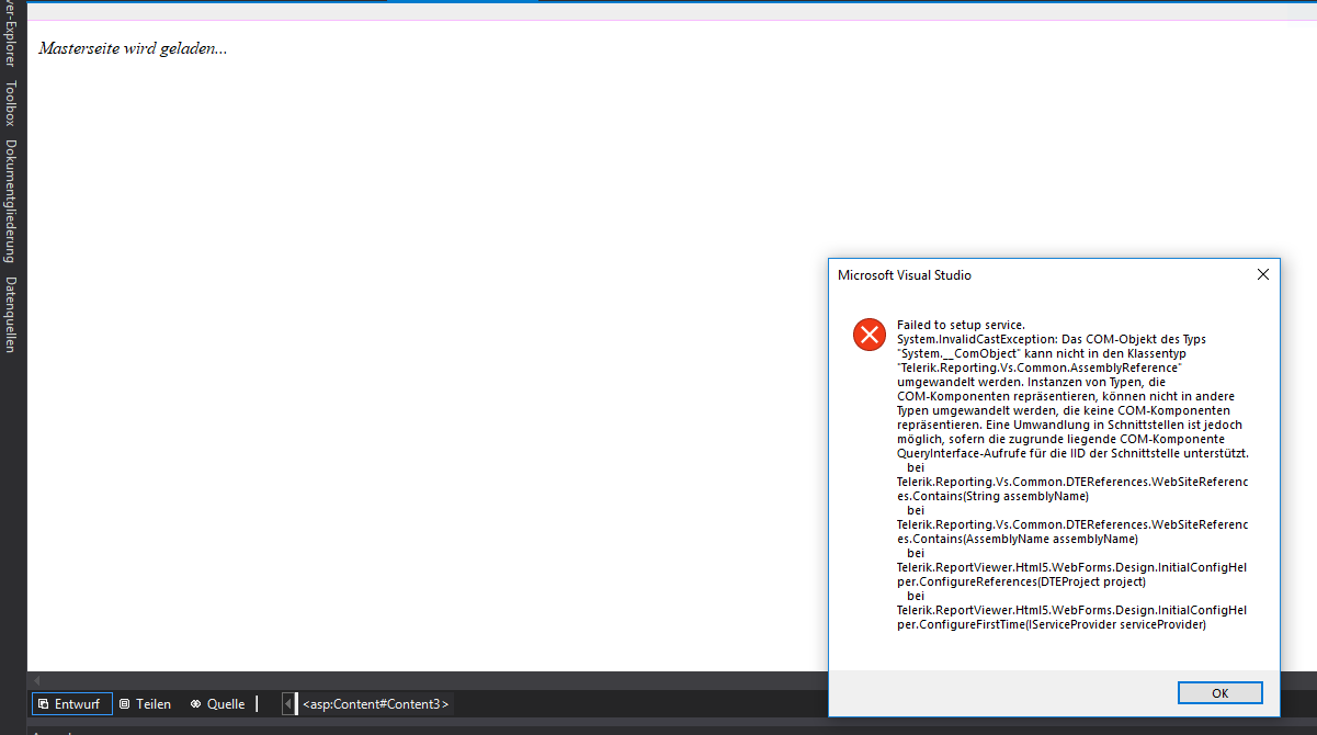 I can ignore this error and click OK, but when I want to set a ReportSource