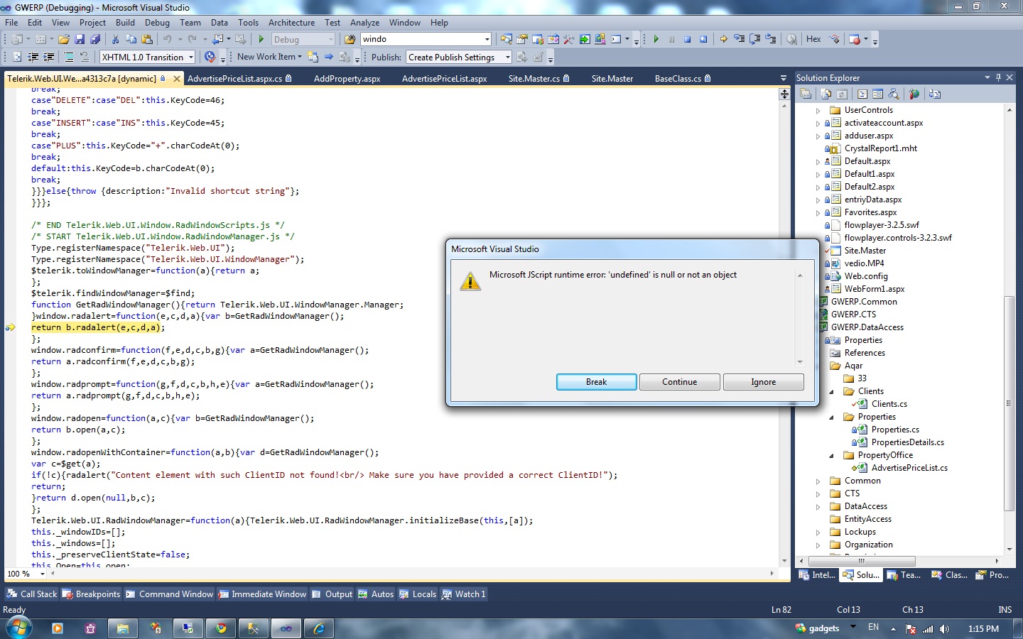 I got an error when i trying to show radalert ,by the way it works on another page .