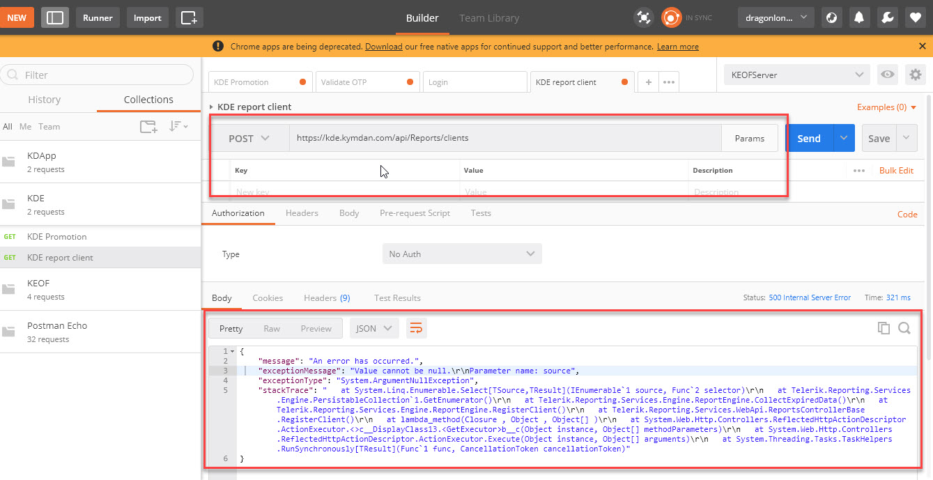 Recently, my customers often report a problem when accessing report reviewer (see attachment Error1.jpg). I inspected and found out that the problem is the error when registering the client with reporting service. I try to re-produce the issue by using Postman and it happens but not frequently (see attachment Error2.jpg). Sometimes it happens, sometimes not. I cannot figure out the cause.