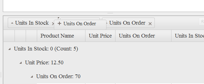 When I try to set multiple group-by columns by dragging a column into a position that isn't at the end, I get a strange behavior where the column heading I'm dragging gets stuck when I release the mouse.