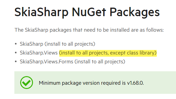 I see SkiaSharp.Views inside the csproj you shared. That should not be in the class library project, it only goes in the platform project. In fact, if you expand the class library project's dependencies, you should see a warning for that package (because it has no NET Standard 2.0 dlls).