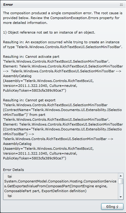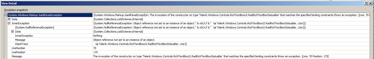 First when I using RadRichTextBoxStatusBar like this I've faced error like in the picture.