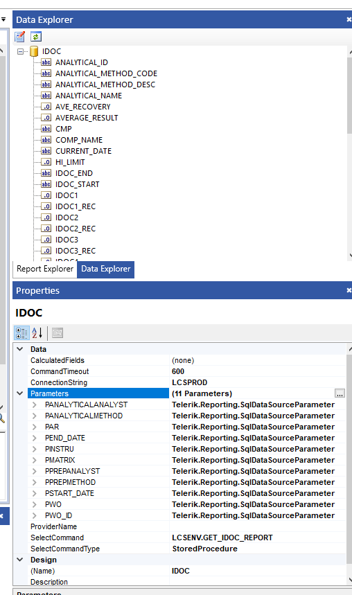 to_char(pStart_Date, 'MM/DD/YYYY') as WO_Start, ......I have run the procedure in SQL Developer using a record to get data from the cursor, and it returns the expected number of data rows. I have used the same query as a Text select datasource query in Telerik and it worked. Any idea why I am getting the "single-row subquery returns more than one row" ? I am thinking Telerik Standalone is not able to access the rows returned from the sys_refcursor output. Any help is appreciated. I have attached the procedure text and a screenshot of the datasource setup.