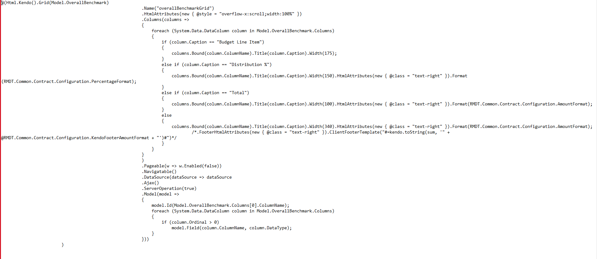 So my suggestion as the next step would be to remove or comment out all grid columns temporarily and run the web page again to verify that the problem is related to the column definitions.