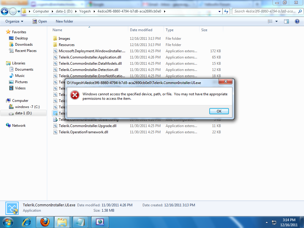 - Re-run the "Telerik.CommonInstaller.UI.exe". -- Resulted into the same access error.