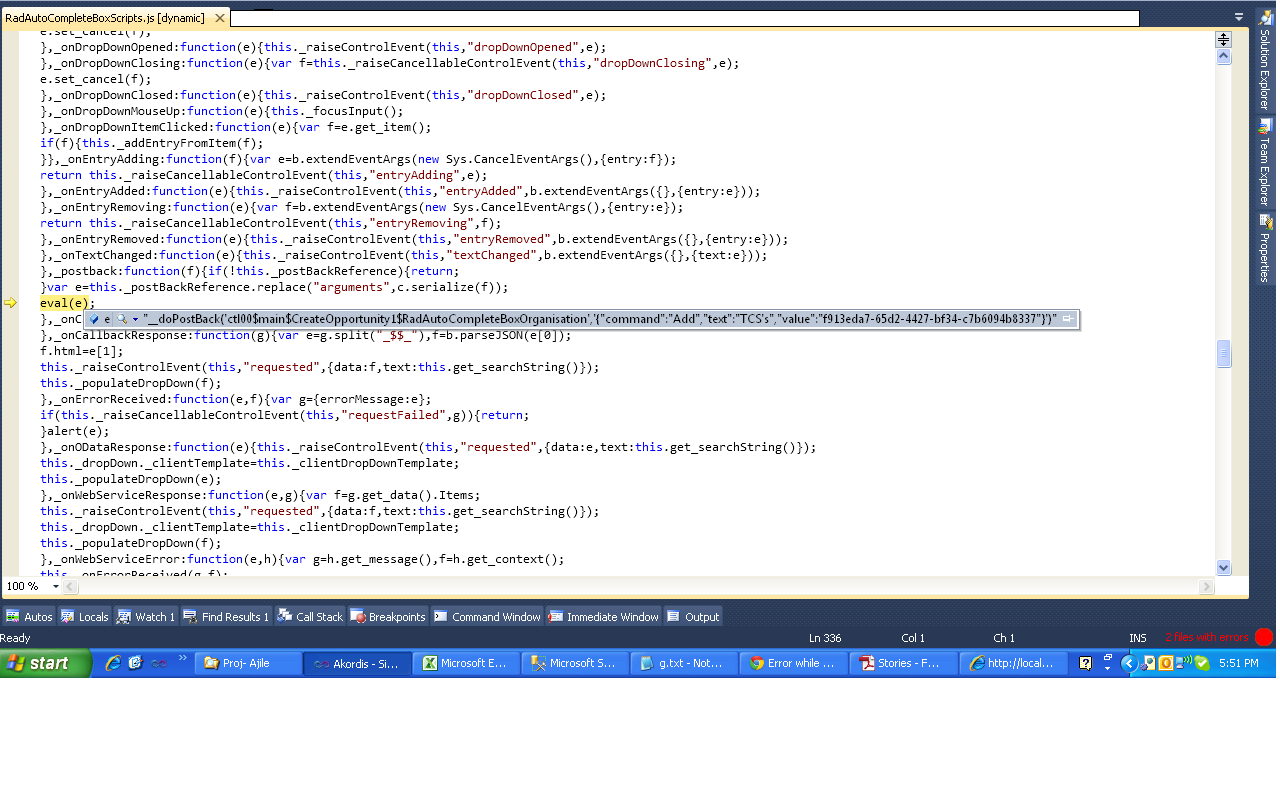 so for that when i added the server side event OnEntryAdded="SetValue" and when i select any text like "xyz's company" then it give me an error.