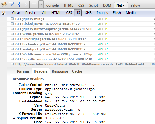 Can you please tell us does your browser load all Javascript files on telerik.com and what is the status code of Telerik.Web.UI.WebResource.axd as shown on the attached image?