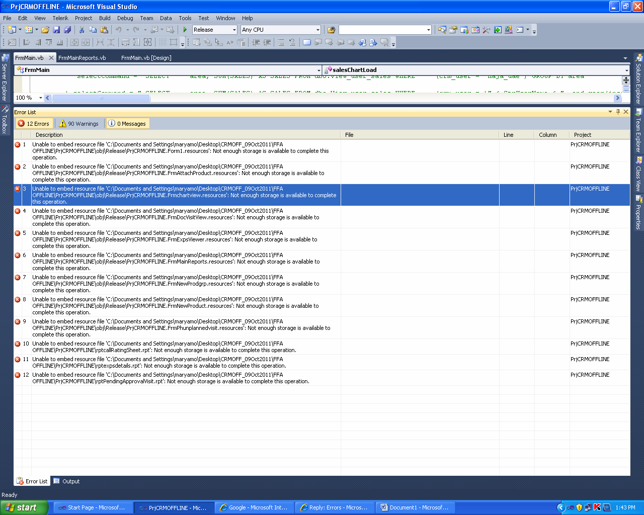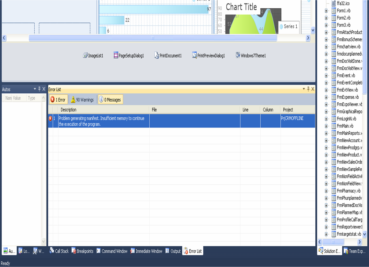 Error 1 Problem generating manifest. Insufficient memory to continue the execution of the program. PrjCRMOFFLINE