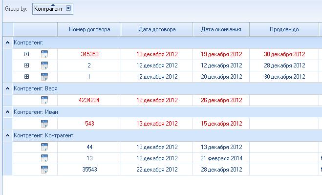 In the GridView I have built a hierarchy. After grouping near the rows, press the + to see the subitems, instead udlenit write down, it hides all the items below. Shown.