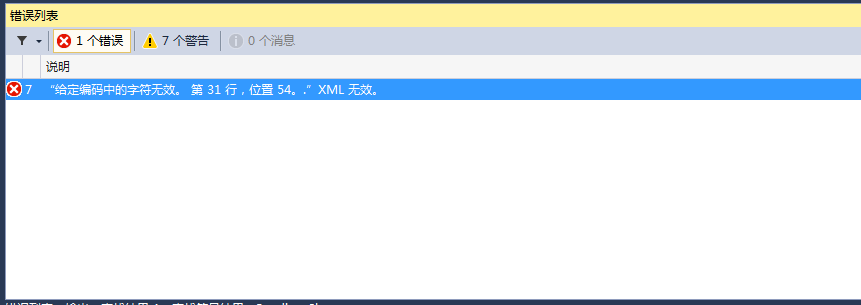 2) compile error: Invalid character specified, line 31, position 54, .'' XML invalid.