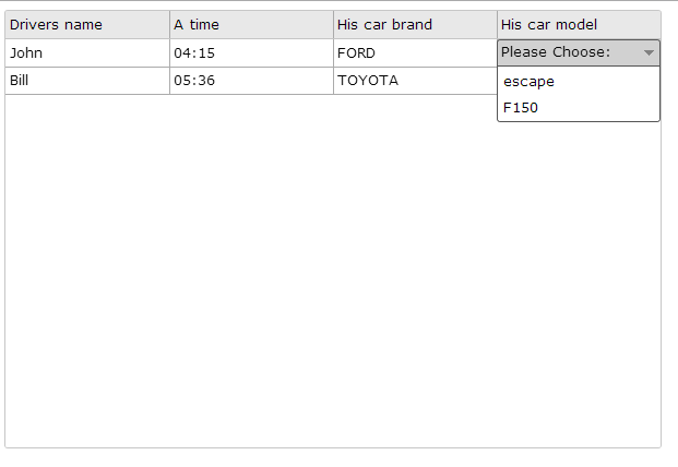 - The model DropDown list must only offer models based on the selected item in the manufacturer DropDown cell.