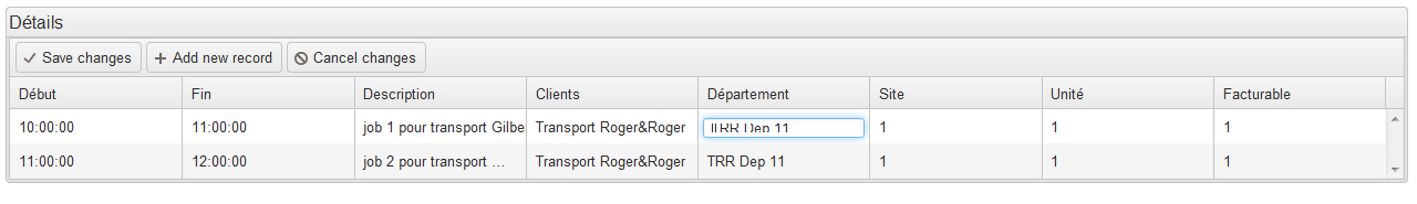 The grid itself is bounded to a datasource feeded by a complete SELECT + JOIN php function that returns not only the foreign keys stored in the "Jobs" table but also a string for the names of the associate client and departement. (i.e. What the two DropDown field are to display.)