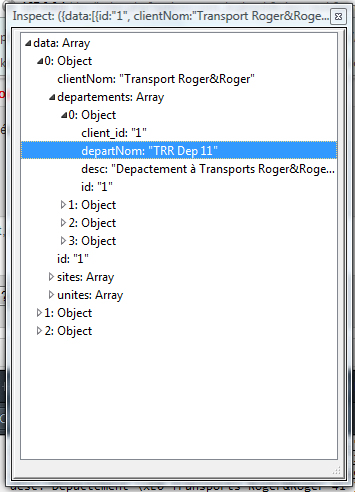 { _events: { change: [ (function(e){ i.trigger(ct, { field: e.field, node: e.node, index: e.index, items: e.items||[ this ], action: e.node?e.action||"itemchange": "itemchange" }) }) ] }, id: "1", froute_id: "1", debut: "10:00:00", fin: "11:00:00", desc: "job 1 pour transport Gilbert Cot\xE9.", client_id: "1", site_id: "1", depart_id: "1", unite_id: "1", facturable: "1", clientNom: "Transport Roger&Roger", departNom: "TRR Dep 11", siteNom: "TRR Site 11", uniteNom: "TRR-UNIT11", departements: (void0), uid: "01edef40-2136-40fd-8544-96044fa71efb", dirty: false, parent: (function(){ returnr })}The value of departments field looks incorrect (undefined). Could you please check it? I assume that this is the root of the problem.