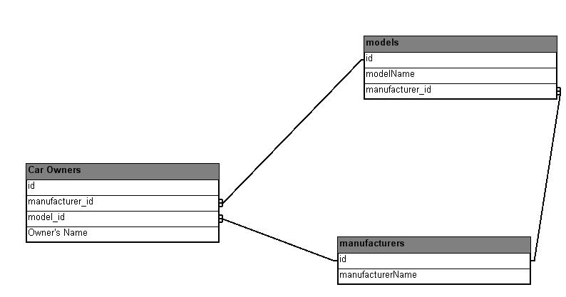 Of course, the model table also has a foreign key to the manufacturer table as Toyota doesn't sell F150 !