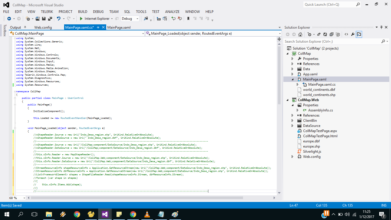 <telerik:RadMap x:Name="radMap"> <telerik:InformationLayer x:Name="informationLayer"> <telerik:InformationLayer.Reader> <telerik:MapShapeReader DataSource="/Silverlight.Help.RadMapSamples;component/Data/world.dbf" Source="/Silverlight.Help.RadMapSamples;component/Data/world.shp" /> </telerik:InformationLayer.Reader> </telerik:InformationLayer></telerik:RadMap>Is there a working example somewhere showing how to read ESRI shape data with RadMap?