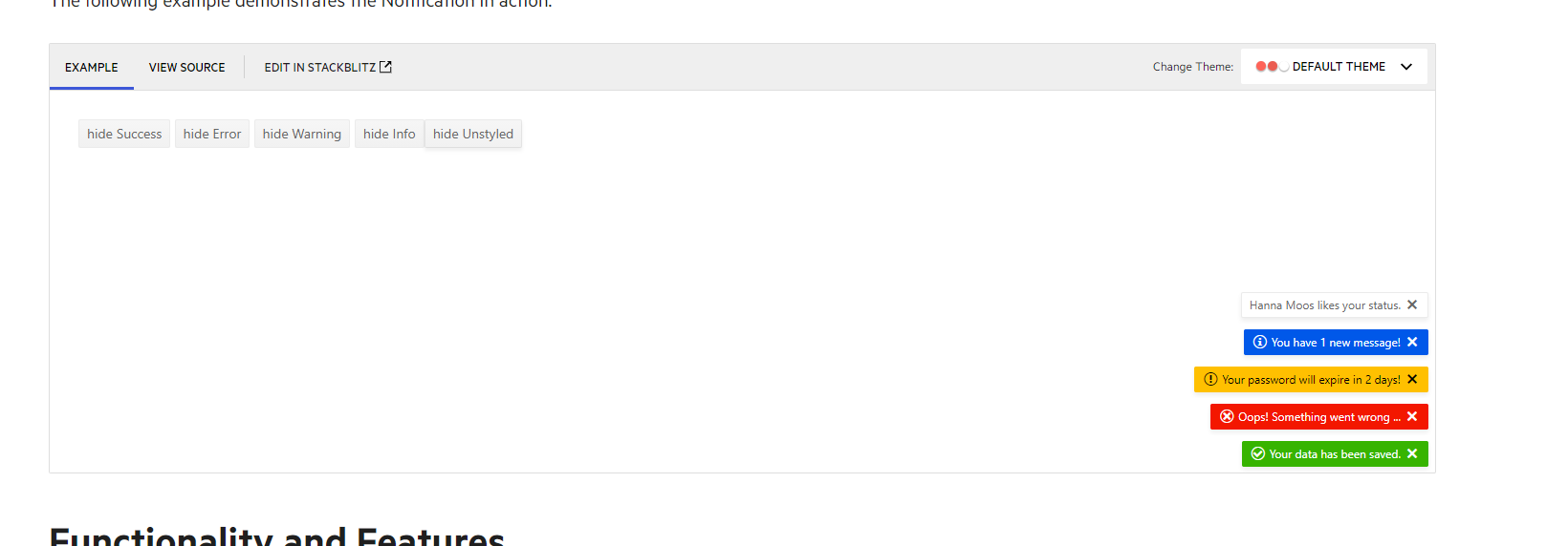 The overview example can show multiple notifications based on the button clicks:
