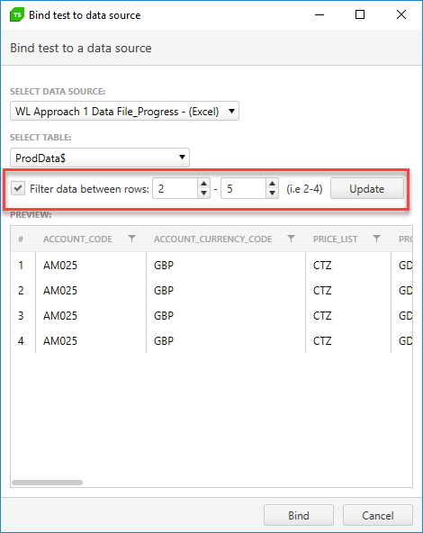 Thank you very much for the response and your efforts, it is very much appreciated. However I have now hit another issue (that we saw previously and got around by using a .xls file instead of .xlsx). Our version of Test Studio (2018.2.606.0) doesn't recognise the ProdData worksheet when trying to bind a test to a data source using an .xlsx file, I have attached screenshots to illustrate this issue. The only way we could see the ProdData sheet was to convert the file to .xls but then we are back to the issue of not seeing the commas in the values pulled into Test Studio!