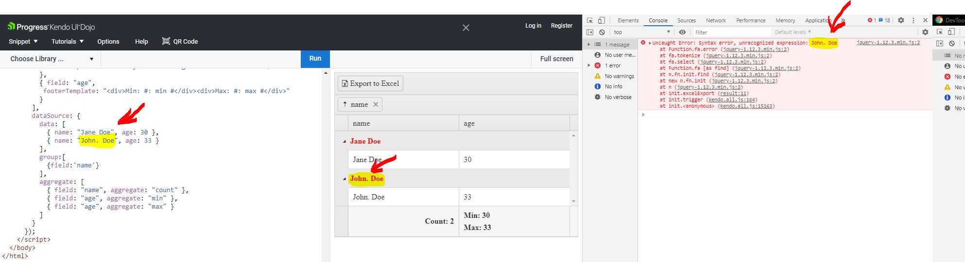 jquery-1.12.3.min.js:2 Uncaught Error: Syntax error, unrecognized expression: John. Doe