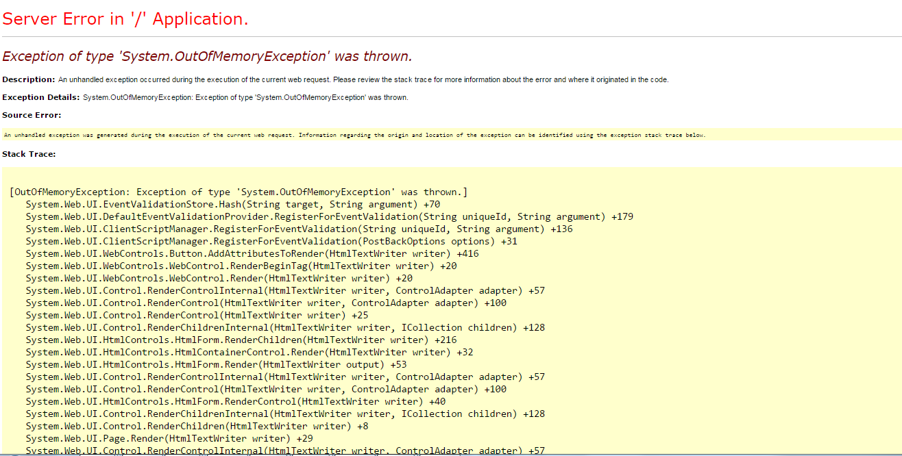 For all items, functionality is working fine but I am facing issue in binding of a specific comboOutside item. i.e., When I choose a specific item from comboOutside, say I have 100 items inside comboOutside, and when I select 35th items from it, then comboRadGrid always throw this error while binding records for 35th item (since 35th item has 2000+ records to bind in comboRadGrid)