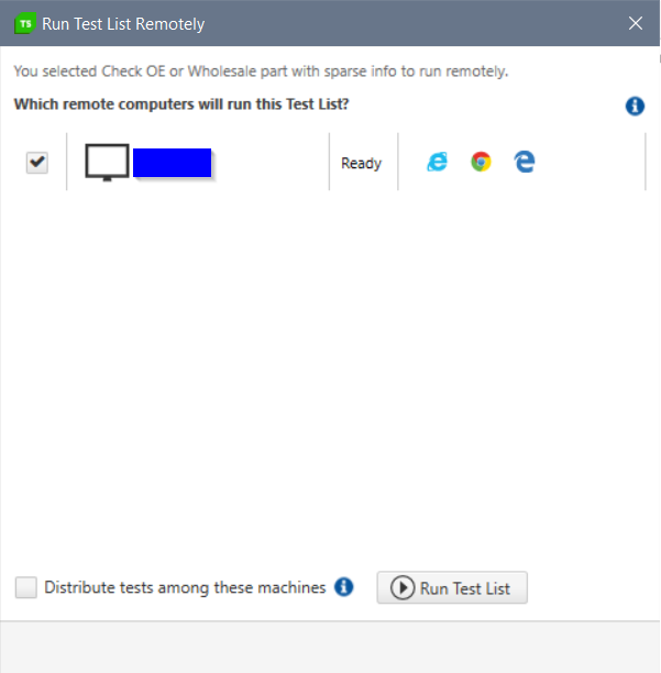 Under Tab "Test Lists" I added a Test case that successfully runs on my local machine. When I choose that Test List and choose "Run List Remotely", I can see the Remote Execution Server (See screenshot "Run Test List Remotely.png").
