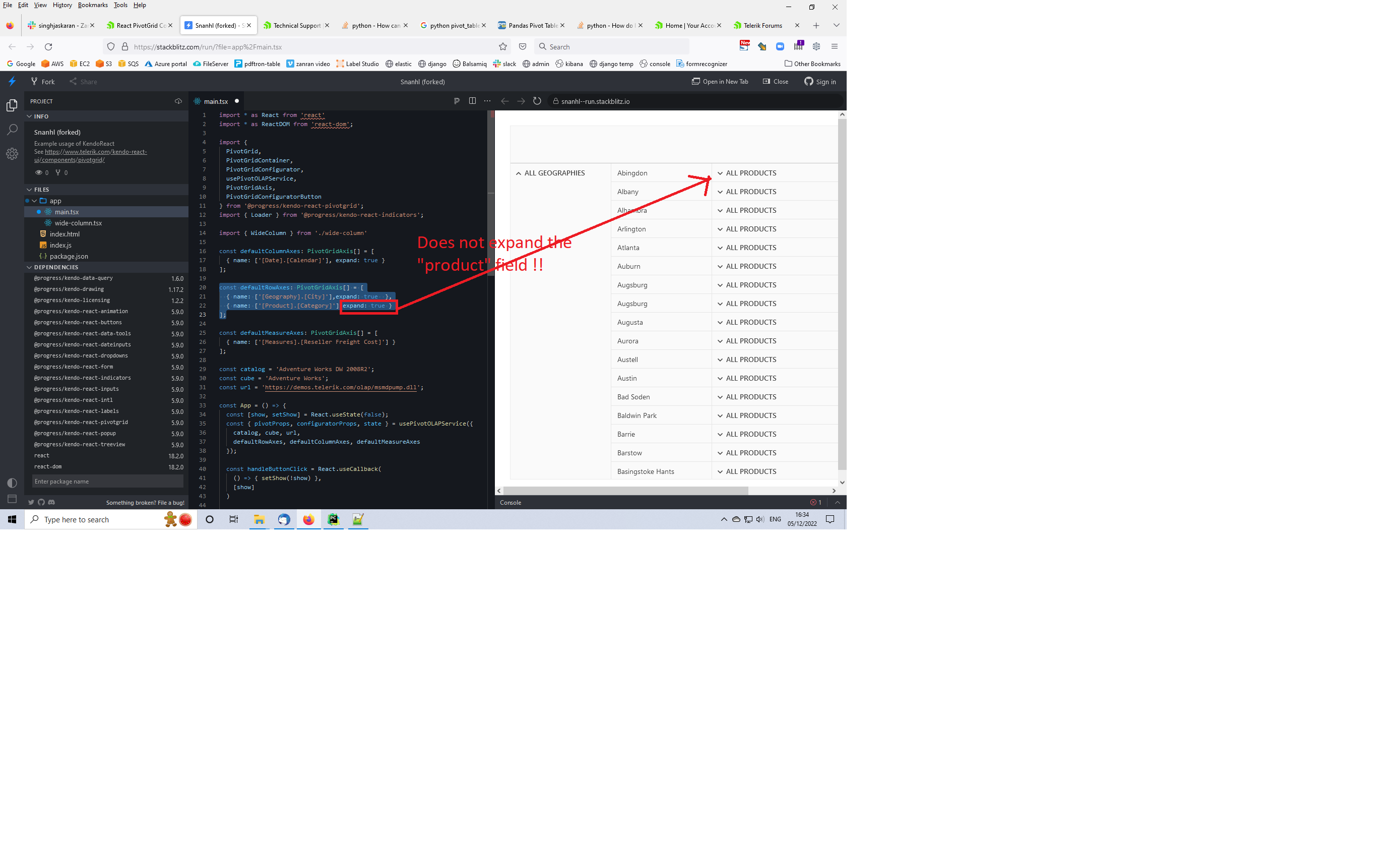 The question is : how does one expand all rows/cols in a pivot grid in React?