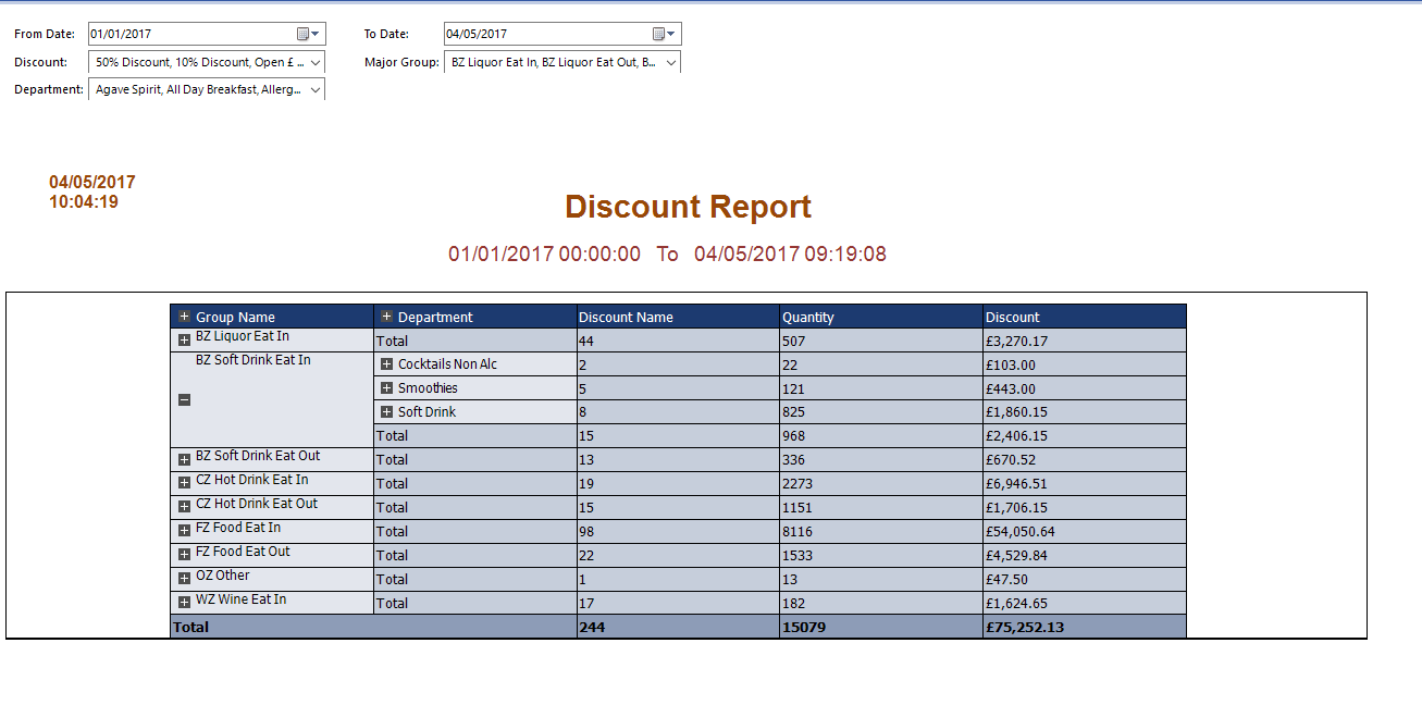 I have that checkbox unchecked for both the header (Group Name) and the [=Fields.GroupName] (for example "BZ Liquor Eat In") as initially all the Departments of all groups are in collapsed mode. I can expand just one group and see its Departments or expand all groups by pressing the toggle in the header. Hence both the header toggle and the [=Fields.GroupName] needs to be in collapsed mode initially.
