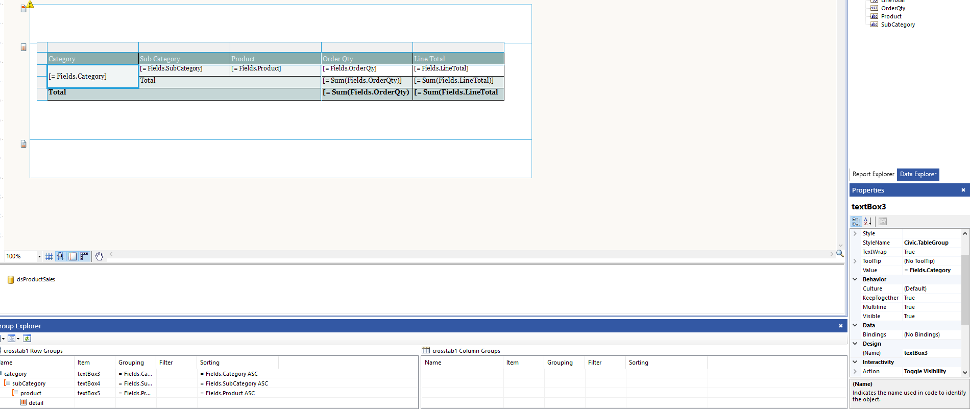 I created a basic report with AdventureWorks data so that you can test it from your end as well but unable to attach a .trdp file, hence details below.