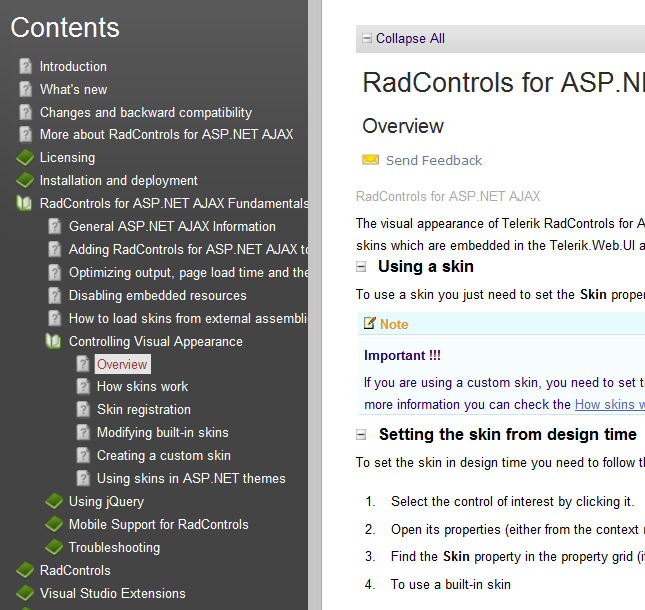 1) I'm buiding a webpage which functioning as Telerik ASP.NET AJAX Documentation (http://www.telerik.com/help/aspnet-ajax/introduction.html ).
