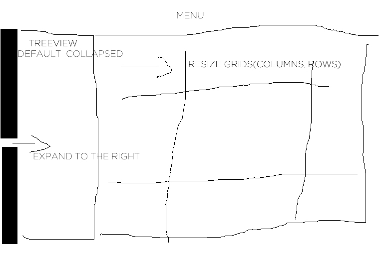 how can I make tabs on the left side that are per default collapsed (see picture) and which should expand to the right side resizing the rest of the window (Grids, etc). I've made the tab on the left side setting TabStrip left but I can't do the rest. there is no collapse property on the tab?