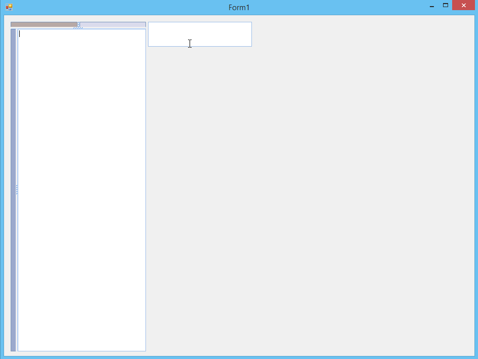 You could build a complex layout in a RadSplitContainer, dock your textbox is some of the panels and use the splitters to resize it. This article could help you in creating the layout: Building Advanced Layouts. Another option is to make the control automatically resize when it is full with text. Please check my code snippet below as well as the attached gif file: