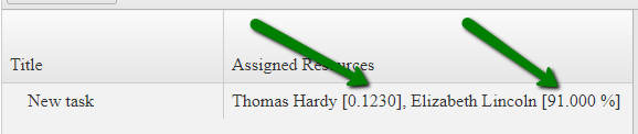 It says on the documentation that "Another optional column for the Resources Table is Format. This column define the format of the assignment Units and its default value is percentage("p0").".