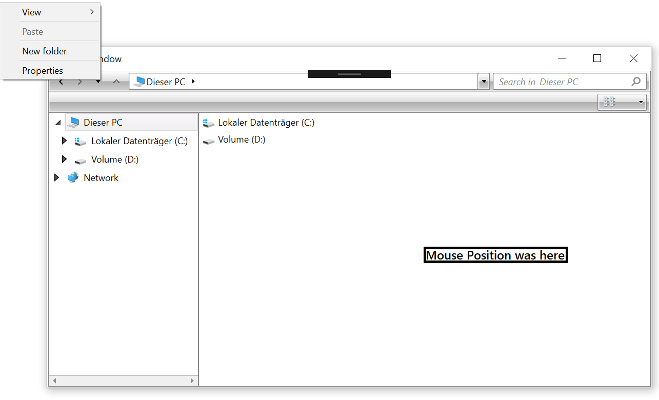 The ContextMenu of for example MainPane does not appear at mouse point or in MainPane area. (See attached image)