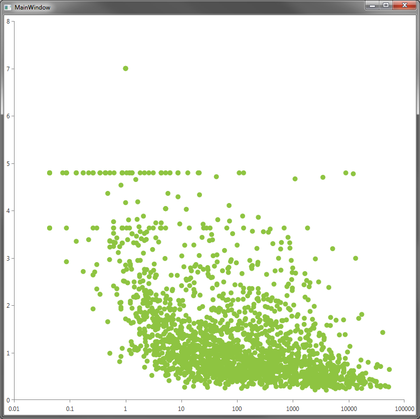 I downloaded the excel file and decided to simply copy-paste the values in code behind. I successfully did that and I ran the application with no problems. However, since the values are numeric values it makes little sense to use a CategoricalAxis and the categorical PointSeries. This is why I updated the project to use a ScatterPointSeries and two numeric axes - one linear, one logarithmic.