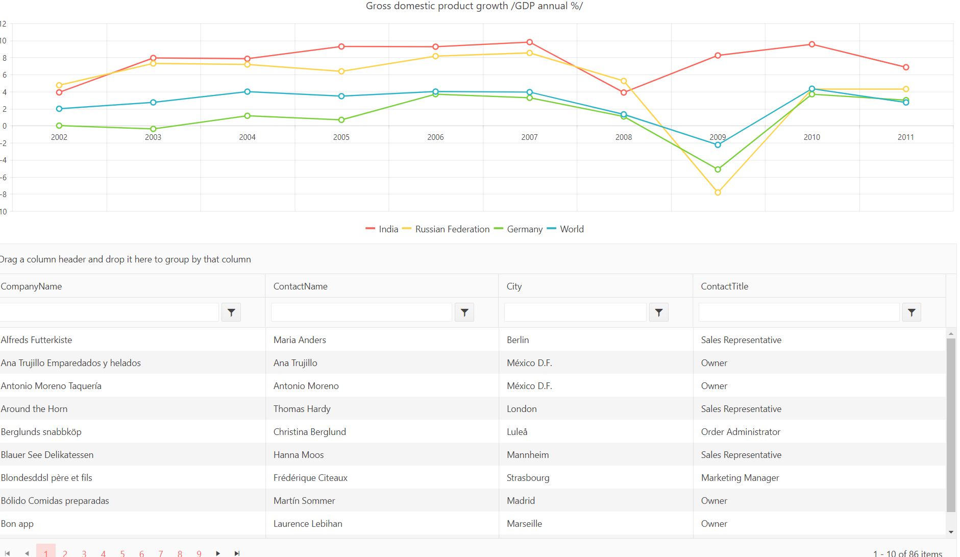 i have required like Export chart into excel format, along with gird, export grid, chart into pdf both. is there any possbility using kendo-ui?