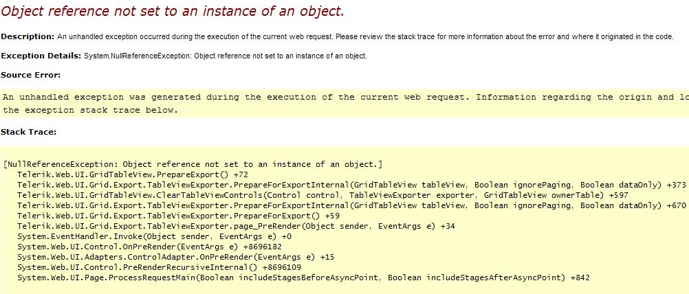 I am using radgrid nestedviewTemplate. export to PDF and Excel is not working. i have attached the code. please check and let me know how to solve this problem.