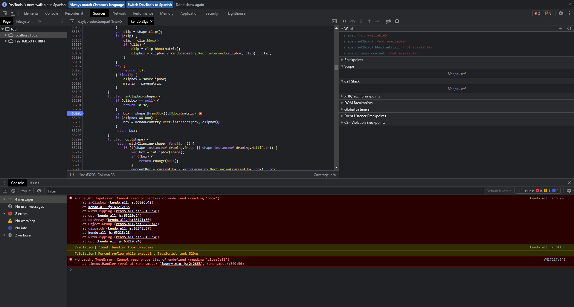 Error: kendo.all.js: 63203 Uncaught TypeError: Cannot read properties of undefined (reading 'bbox')