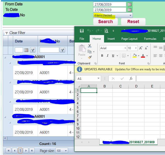 When I choose more that 4 options, click the Search button, the grid shows the searched data but when i click the export to excel button, it exported nothing.