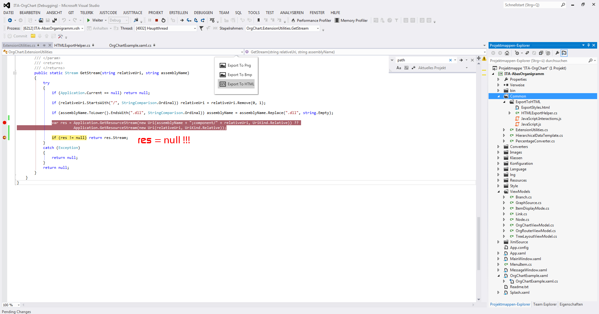 res = null !!! It seams that something is wrong with the relativeUri: "Common/ExportToHTML/JavaScript.js" assemblyName= "ITA-AbasOrganigramm" - which is wright!