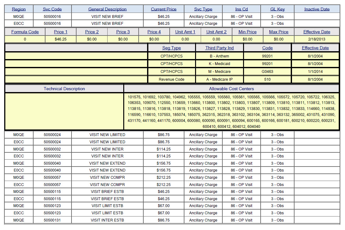 <telerik:RadGrid ID="CDMGrid" runat="server" AllowPaging="True" AllowSorting="true" PageSize="25" AutoGenerateColumns="false" Skin="Office2007" OnNeedDataSource="CDMGrid_NeedDataSource" OnItemDataBound="CDMGrid_ItemDataBound" OnPreRender="CDMGrid_PreRender" OnDetailTableDataBind="CDMGrid_DetailTableDataBind" Height="657"> <ExportSettings IgnorePaging="false" OpenInNewWindow="true"> <Pdf PageHeight="210mm" PageWidth="297mm" DefaultFontFamily="Arial Unicode MS" PageTopMargin="25mm" BorderStyle="Thin" BorderColor="#666666" BorderType="AllBorders" /> </ExportSettings> <PagerStyle Mode="NextPrevAndNumeric" AlwaysVisible="True" /> <MasterTableView TableLayout="Fixed" DataKeyNames="ServiceCode, HospRegn, TechnicalDesc" Name="MasterTableView"> <Columns> <telerik:GridBoundColumn UniqueName="HospRegn" DataField="HospRegn" HeaderText="Region" HeaderStyle-HorizontalAlign="Center" ItemStyle-HorizontalAlign="Center" HeaderStyle-Width="60" /> <telerik:GridBoundColumn UniqueName="ServiceCode" DataField="ServiceCode" HeaderText="Svc Code" HeaderStyle-HorizontalAlign="Center" ItemStyle-HorizontalAlign="Center" HeaderStyle-Width="80" /> <telerik:GridBoundColumn UniqueName="GeneralDesc" DataField="GeneralDesc" HeaderText="General Description" HeaderStyle-HorizontalAlign="Center" ItemStyle-HorizontalAlign="Left" ItemStyle-Font-Size="11px" /> <telerik:GridBoundColumn UniqueName="TechnicalDesc" DataField="TechnicalDesc" HeaderText="Technical Description" HeaderStyle-HorizontalAlign="Center" ItemStyle-HorizontalAlign="Left" Visible="false" /> <telerik:GridNumericColumn NumericType="Currency" UniqueName="Price1" DataField="Price1" HeaderText="Current Price" HeaderStyle-HorizontalAlign="Center" ItemStyle-HorizontalAlign="Center" HeaderStyle-Width="85" /> <telerik:GridBoundColumn UniqueName="SvcTypeDesc" DataField="SvcTypeDesc" HeaderText="Svc Type" HeaderStyle-HorizontalAlign="Center" ItemStyle-HorizontalAlign="Center" HeaderStyle-Width="100" /> <telerik:GridBoundColumn UniqueName="InsCdStr" DataField="InsCdStr" HeaderText="Ins Cd" HeaderStyle-HorizontalAlign="Center" ItemStyle-HorizontalAlign="Center" HeaderStyle-Width="140" /> <telerik:GridBoundColumn UniqueName="GLKeyStr" DataField="GLKeyStr" HeaderText="GL Key" HeaderStyle-HorizontalAlign="Center" ItemStyle-HorizontalAlign="Center" HeaderStyle-Width="70" /> <telerik:GridDateTimeColumn UniqueName="InactiveDate" DataField="InactiveDate" HeaderText="Inactive Date" HeaderStyle-HorizontalAlign="Center" DataFormatString="{0:d}" ItemStyle-HorizontalAlign="Center" HeaderStyle-Width="95" /> </Columns> <DetailTables> <telerik:GridTableView AllowPaging="false" AutoGenerateColumns="false" DataKeyNames="" Name="PriceDetail" Width="100%" Font-Size="11px"> <Columns> <telerik:GridBoundColumn UniqueName="FormulaCode" DataField="FormulaCode" HeaderText="Formula Code" HeaderStyle-HorizontalAlign="Center" ItemStyle-HorizontalAlign="Center" /> <telerik:GridNumericColumn NumericType="Currency" UniqueName="Price1" DataField="Price1" HeaderText="Price 1" HeaderStyle-HorizontalAlign="Center" ItemStyle-HorizontalAlign="Center" HeaderStyle-Width="70" /> <telerik:GridNumericColumn NumericType="Currency" UniqueName="Price2" DataField="Price2" HeaderText="Price 2" HeaderStyle-HorizontalAlign="Center" ItemStyle-HorizontalAlign="Center" HeaderStyle-Width="70" /> <telerik:GridNumericColumn NumericType="Currency" UniqueName="Price3" DataField="Price3" HeaderText="Price 3" HeaderStyle-HorizontalAlign="Center" ItemStyle-HorizontalAlign="Center" HeaderStyle-Width="70" /> <telerik:GridNumericColumn NumericType="Currency" UniqueName="Price4" DataField="Price4" HeaderText="Price 4" HeaderStyle-HorizontalAlign="Center" ItemStyle-HorizontalAlign="Center" HeaderStyle-Width="70" /> <telerik:GridBoundColumn DataFormatString="0.00" UniqueName="UnitAmt1" DataField="UnitAmt1" HeaderText="Unit Amt 1" HeaderStyle-HorizontalAlign="Center" ItemStyle-HorizontalAlign="Center" HeaderStyle-Width="70" /> <telerik:GridBoundColumn DataFormatString="0.00" UniqueName="UnitAmt2" DataField="UnitAmt2" HeaderText="Unit Amt 2" HeaderStyle-HorizontalAlign="Center" ItemStyle-HorizontalAlign="Center" HeaderStyle-Width="70" /> <telerik:GridNumericColumn NumericType="Currency" UniqueName="MinPrice" DataField="MinPrice" HeaderText="Min Price" HeaderStyle-HorizontalAlign="Center" ItemStyle-HorizontalAlign="Center" HeaderStyle-Width="70" /> <telerik:GridNumericColumn NumericType="Currency" UniqueName="MaxPrice" DataField="MaxPrice" HeaderText="Max Price" HeaderStyle-HorizontalAlign="Center" ItemStyle-HorizontalAlign="Center" HeaderStyle-Width="70" /> <telerik:GridDateTimeColumn UniqueName="EffectiveDate" DataField="EffectiveDate" HeaderText="Effective Date" HeaderStyle-HorizontalAlign="Center" DataFormatString="{0:d}" ItemStyle-HorizontalAlign="Center" HeaderStyle-Width="94" /> </Columns> </telerik:GridTableView> <telerik:GridTableView AllowPaging="false" AutoGenerateColumns="false" DataKeyNames="" Name="ProcedureDetail" Width="100%" Font-Size="11px"> <Columns> <telerik:GridTemplateColumn UniqueName="Filler" /> <telerik:GridBoundColumn UniqueName="SegTypeInd" DataField="SegTypeInd" HeaderText="Seg Type" HeaderStyle-HorizontalAlign="Center" ItemStyle-HorizontalAlign="Center" HeaderStyle-Width="100" /> <telerik:GridBoundColumn UniqueName="ThirdPartyIndStr" DataField="ThirdPartyIndStr" HeaderText="Third Party Ind" HeaderStyle-HorizontalAlign="Center" ItemStyle-HorizontalAlign="Center" HeaderStyle-Width="140" /> <telerik:GridBoundColumn UniqueName="Code" DataField="Code" HeaderText="Code" HeaderStyle-HorizontalAlign="Center" ItemStyle-HorizontalAlign="Center" HeaderStyle-Width="70" /> <telerik:GridDateTimeColumn UniqueName="EffectiveDate" DataField="EffectiveDate" HeaderText="Effective Date" HeaderStyle-HorizontalAlign="Center" DataFormatString="{0:d}" ItemStyle-HorizontalAlign="Center" HeaderStyle-Width="94" /> </Columns> </telerik:GridTableView> <telerik:GridTableView AllowPaging="false" AutoGenerateColumns="false" DataKeyNames="" Na