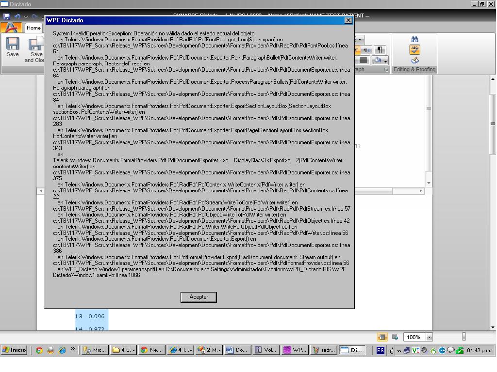 in WPF_Dictado.Window1.parametrospdf () in C: \ Documents and Settings \ Administrator \ Desktop \ WPD_Dictado RIS \ WPF Dictation \ Window1.xaml.vb: line 1066