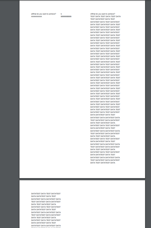 I have tabular data in DIV elements. The data being displayed in table is from rich textbox, so some columns have longer content than other, due to which kendo pdf automatically break the page (which is fine) and remaining content displayed on second page.