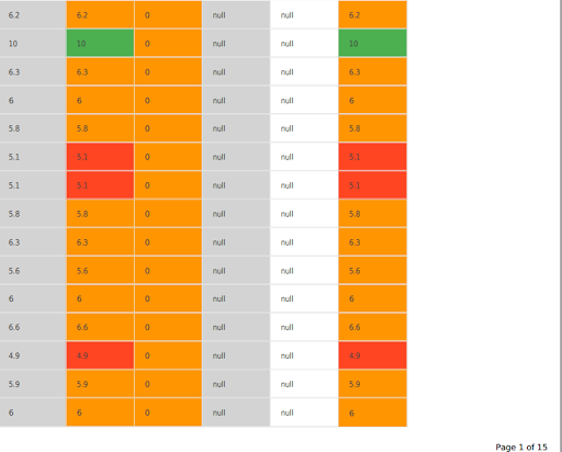My data has numeric values or 'null's. However while export all pages to PDF, the 'null's on the first page are converted to "null" and displaying as such, and on the subsequent pages they are appearing as blank spaces (which is the desired output).