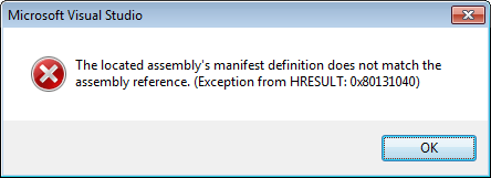 I have tried to install the corresponding WPF controls, remove and add the reference again, add binding redirects, and just about everything else, but it still doesn't work.