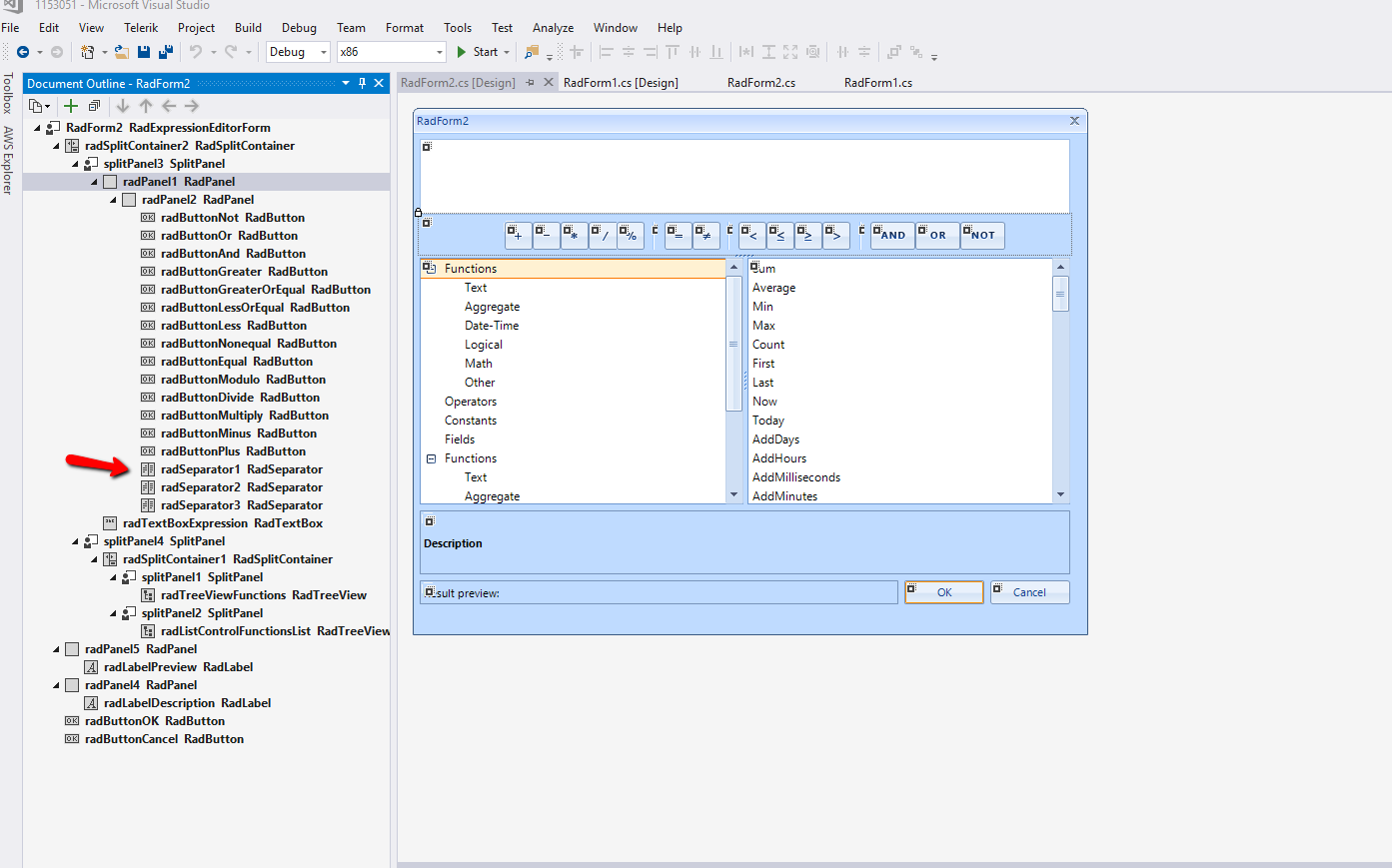 What I'm trying to do is use the RadExpressionEditorForm for creating and editing formulas easier for our users.